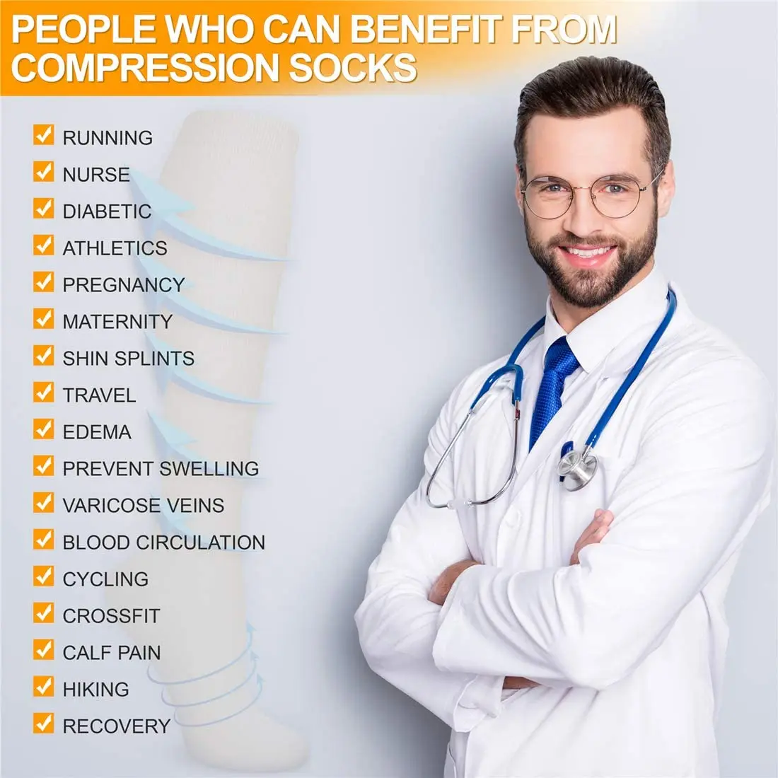 Whether you're an athlete who wants to excel in the game, who sit for long period during travel or at work, or someone dealing with pain due to a chronic condition, supporting proper blood flow to your feet is of the utmost importance.Our Compression Socks are engineered with the latest arch to calf compression technology, offering a targeted foot to calf muscle support,help to keep blood flowing to boost athletic performance and alleviate pain due to a number of conditions.